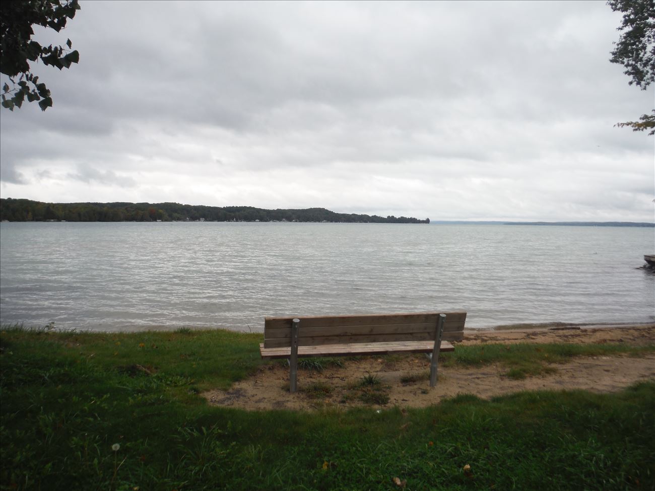 Access Site on southern Torch Lake. Limited parking, sandy beach, and bench. No signage but apparent park from road.