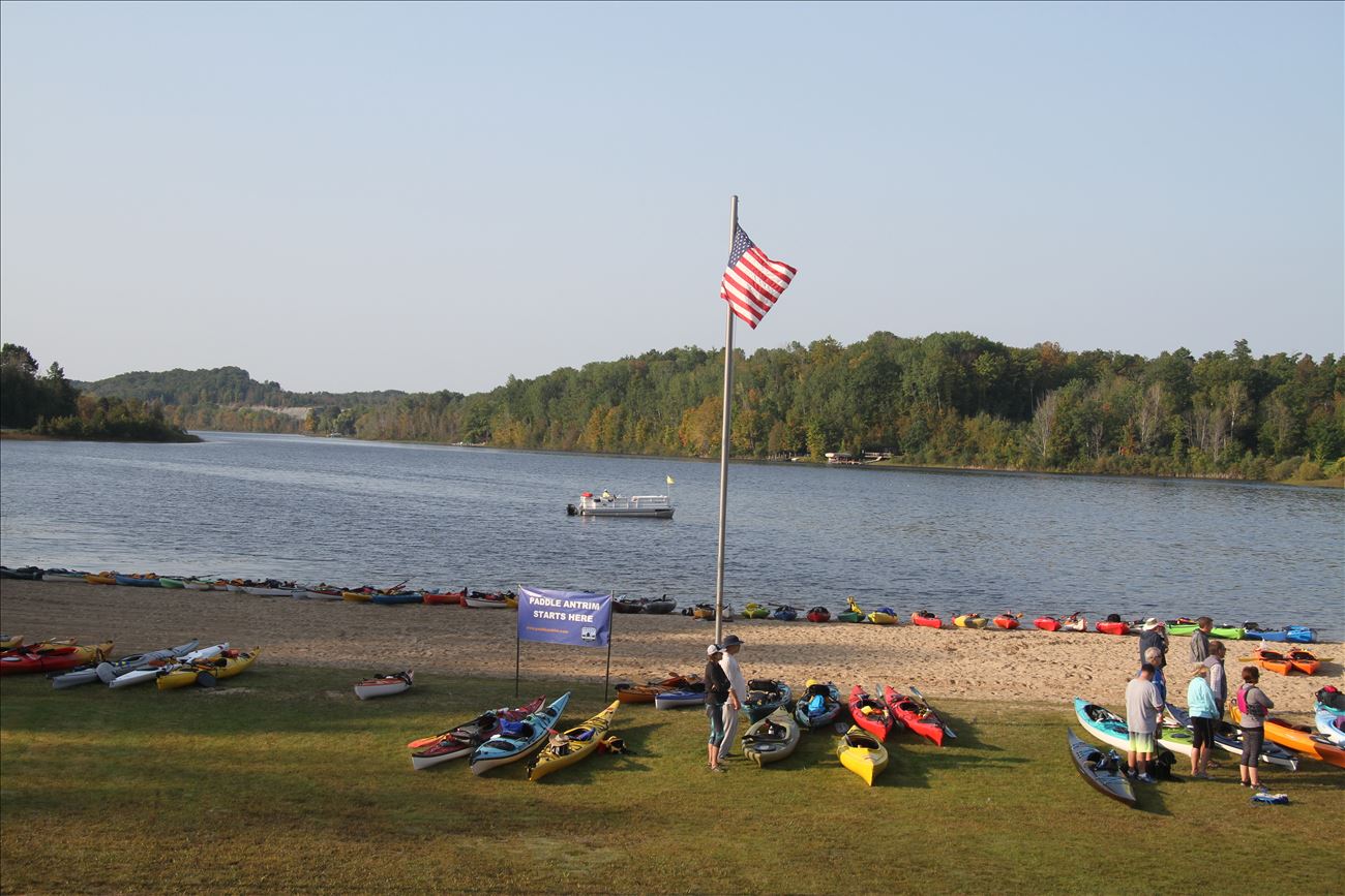 This water trail access site is designated a trailhead. The site has a carry-in launch. Located in Ellsworth River Park this site offers parking, restrooms, a picnic shelter, trash, playground, and a swimming beach. Wooden Shoe Campground is directly across the street.