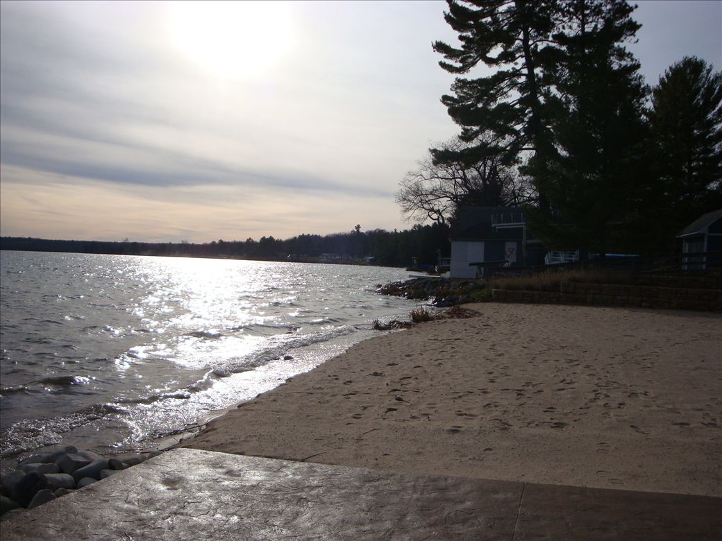 A handicap ramp down to the water provides carry in access down the slope to the sandy beach with a sandy bottom. A developed launch. with limited parking, is at Woodruff Street just 1/2 mile north.