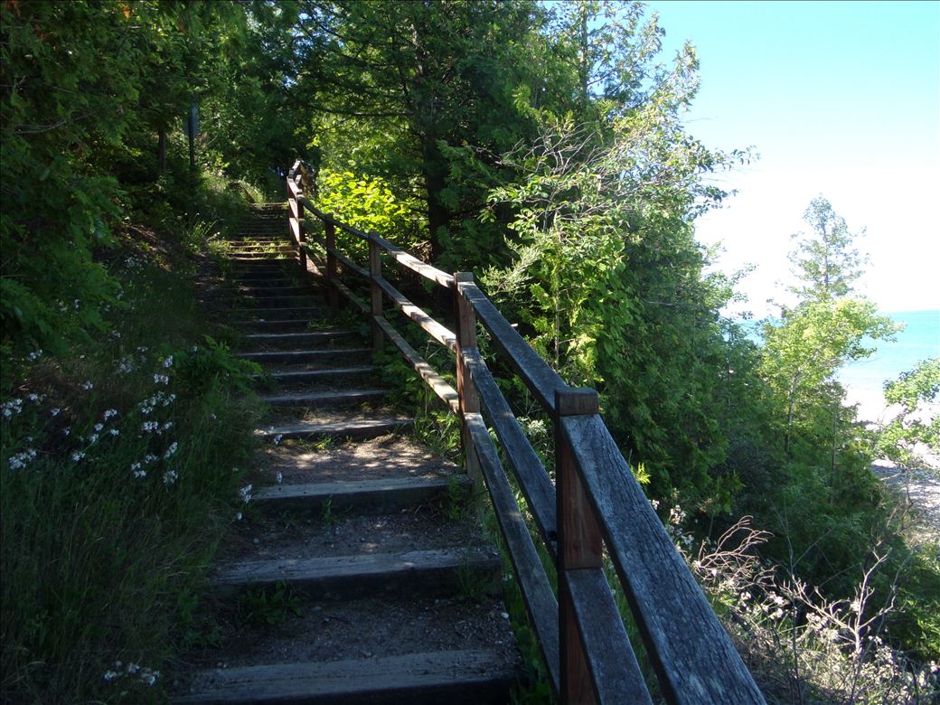 A popular beach area that is renown for its Petoskey stones. Large bluffs lead to a township park at the top with a picnic area with grills, play area and vault toilets.