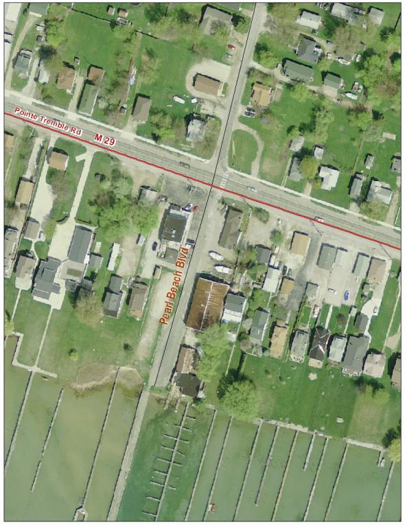 Road right of way access to the North Channel of the St. Clair River. There is limited parking at this Clay Township facility.