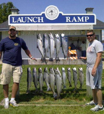 Located south of the stop light on Water Street past the marina and Band Shell, the ramp has three docks serving six launch slips. There is also a restroom and fish cleaning station available. The use of the fish cleaning station requires a permit.