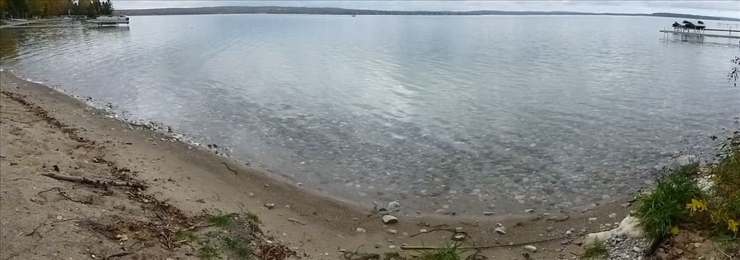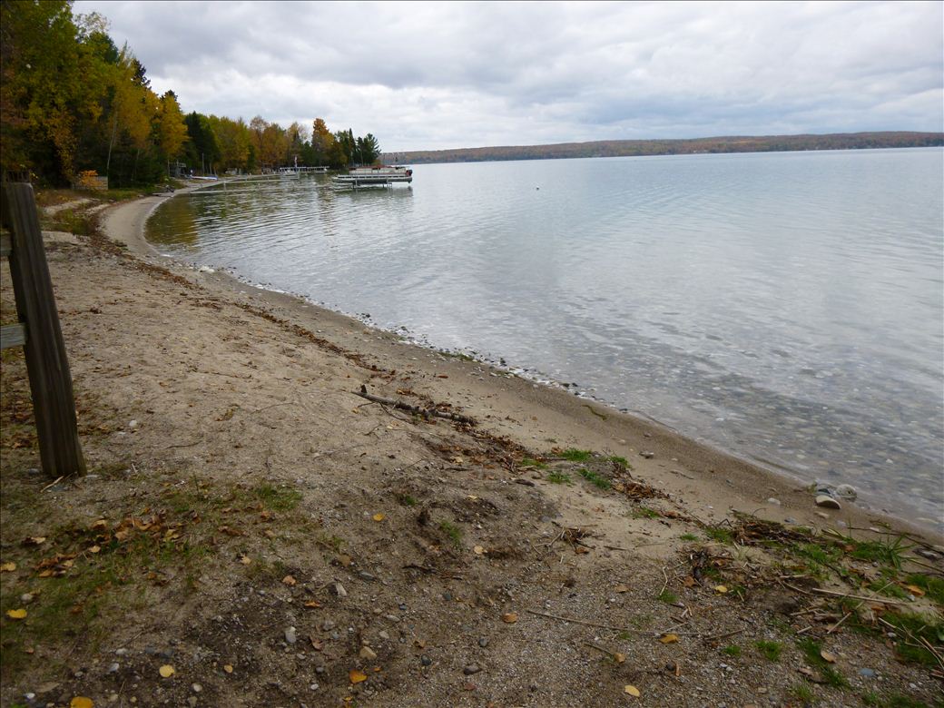 Gravel road to sandy shoreline and rocky bottom lake front. Residential area with no parking. Good for rest stop or local use.