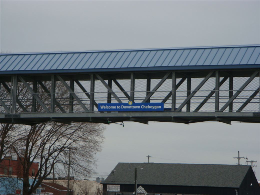 Developed Boat Launch on the east side of the river at the pedestrian bridge right in downtown Cheboygan. Great access to all the city amenities (hotels, restaurants, stores, etc.), chamber of commerce, bathrooms and water via the pedestrian bridge. The launch is in the city park with many recreational assets.