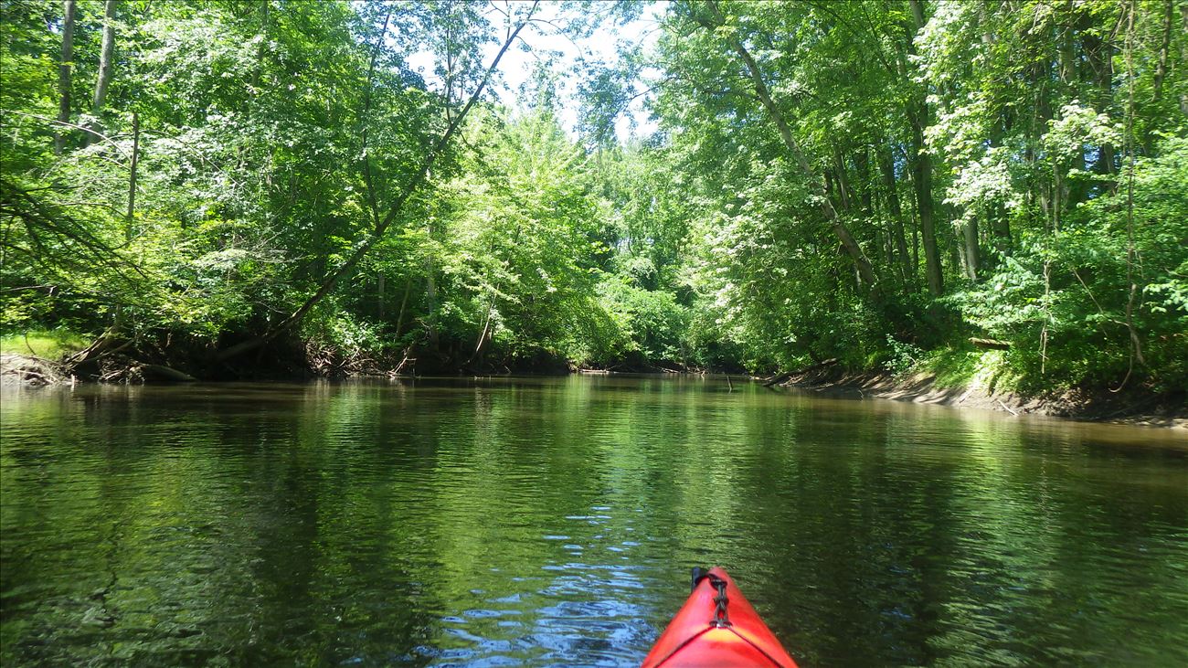 After pathway clearing is completed for the season, the upstream stretch of river from 48th Ave down to Lawrence is considered Intermediate in terms of difficulty at normal water levels. However at extremely low water levels, exposed logs may cause some difficulty. Also, please be aware that at extremely high water levels, it is not possible to float under the bridge at Lawrence. If you are floating downstream towards the bridge and realize you can't safely fit under it, there is an emergency place to land your boat on River Right which is in the backyard of the 1st house north of the bridge. Of course if the river is that high, you shouldn't be on the water anyway.