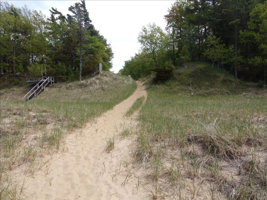 A 66' wide strip of land featuring a trail down to the beach. Small parking area off of Red Apple Road.