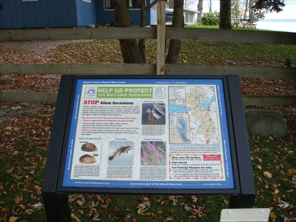Developed road end cement boat launch on Burt Lake. The property has a few signs, limited parking especially in the summer. The site is next to Hoppies Landing Bar and Restaurant.