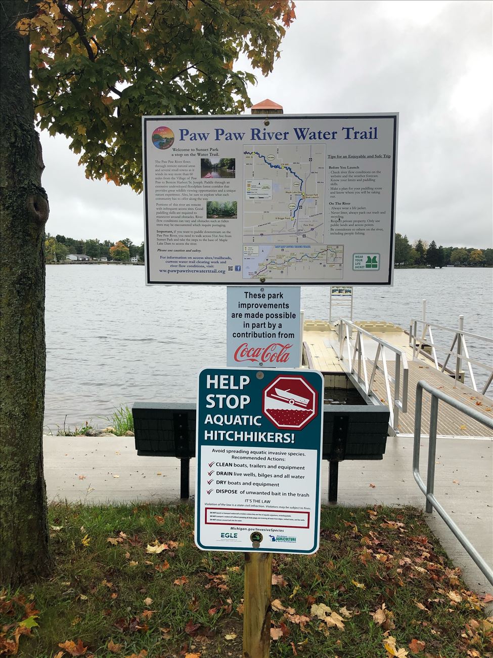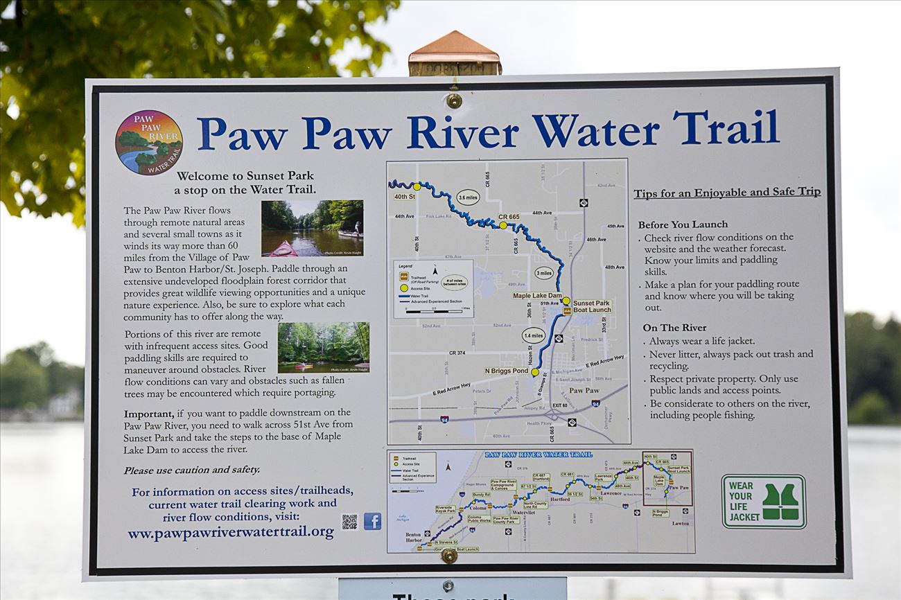 To find this access, take I-94 to the Paw Paw exit (#60) and go north through town on M-40. Continue north out of town on M-40 and you will see the entrance to Sunset Park parking lot on your left, just before the intersection with 51st Ave.