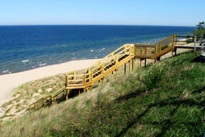 This 22-acre park with its extensive Lake Michigan beachfront is a great place for swimming, sunbathing and picnicking. IN addition to the unique tunnel through a dune, this park has a children's playground complete with a dune climb and a dune stairway with scenic views of Lake Michigan, picnic areas, two picnic shelters (contact county to reserve), four sand volleyball courts, modern restrooms, and seasonal concession with vending machines.