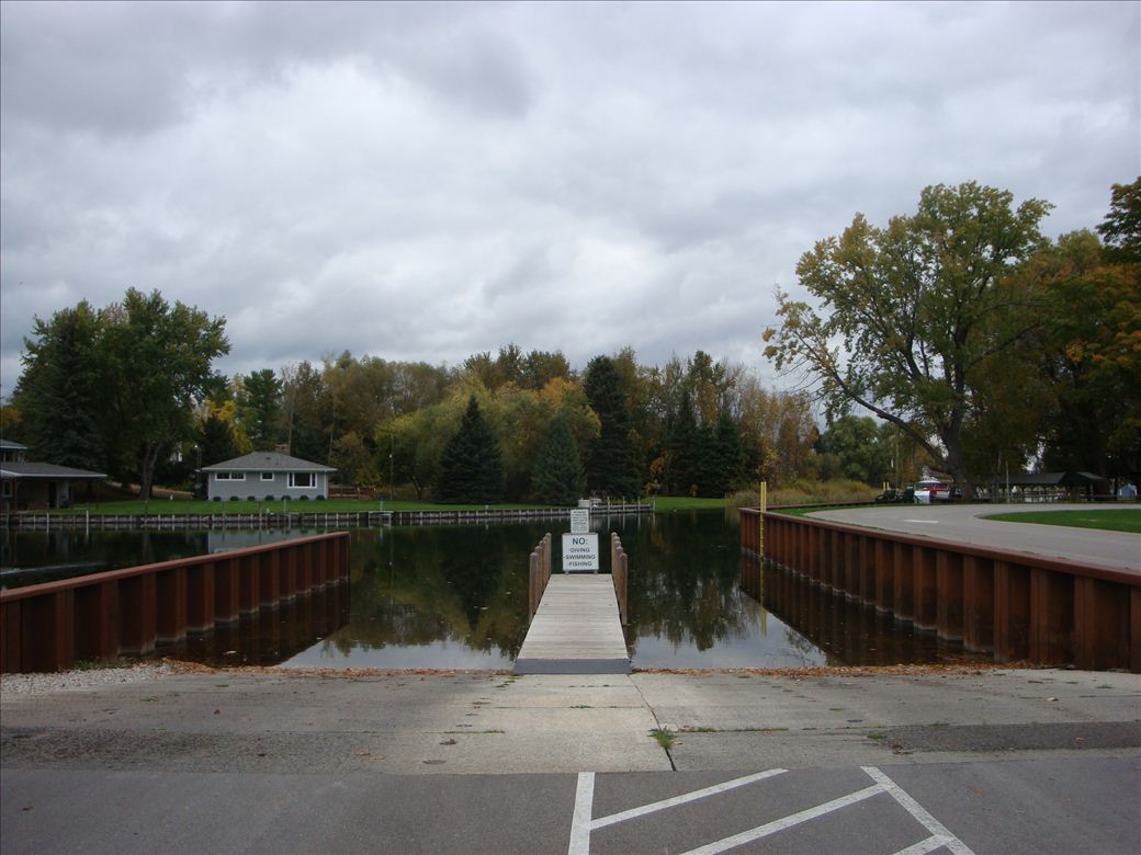Cement launch and docks are very busy in the summer months. It is on the bend of the river, not a great access point for non-motorized. Suggest launching across the Little Sturgeon River at Marina Park.