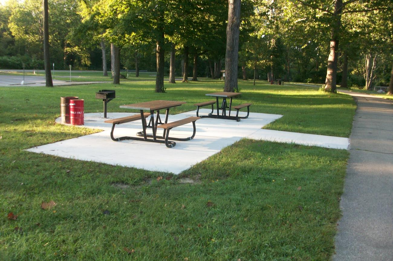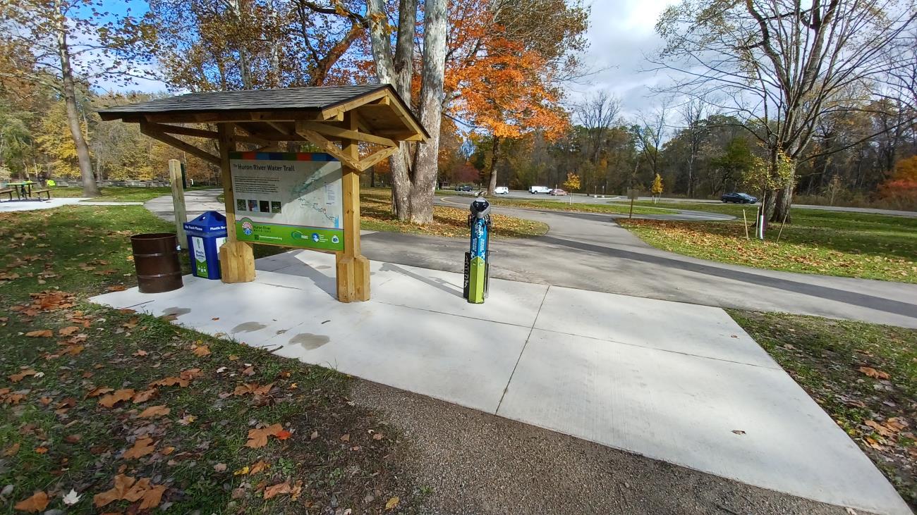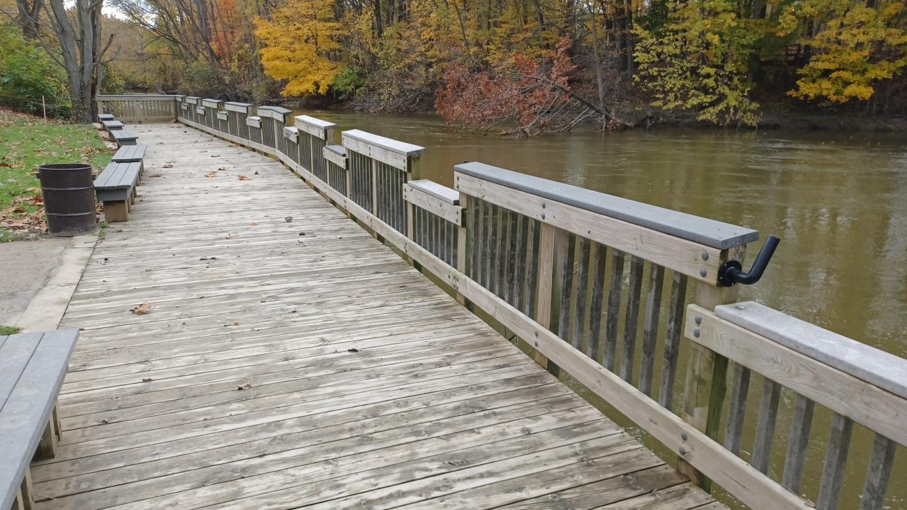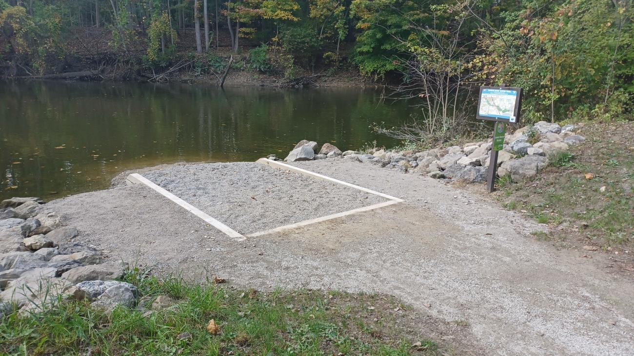 The North Fishing Site has an accessible observation platform and fishing area featuring low railings, benches and other accessible amenities along the Huron River. A gentle aggregate path connects the parking area to the side of the launch area. The launch is a 10’ wide mixed pea-stone/sand center to offer boat stability when entering the craft, with a 5’ wide hard aggregate surface on either side for left- or right-handed loading. The accessible launch opened on November 1, 2021. There are five accessible picnic tables and two swivel grills in the area. The vault latrine is also accessible.