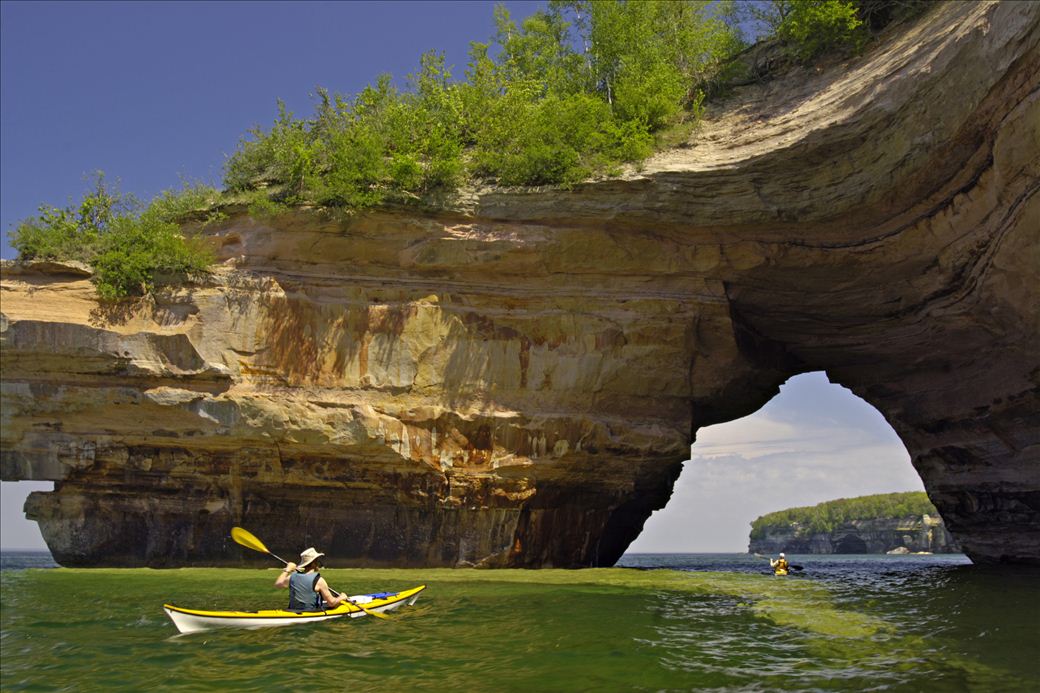 Paddlers enjoying the interesting coves of Pictured Rocks National Lakeshore