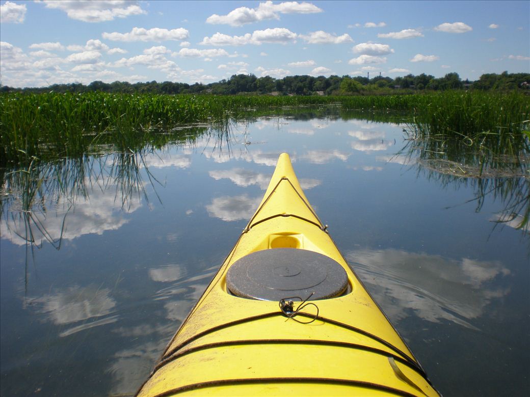 One can paddle through Stony Island and view swans, turtles, heron and the occasional eagle. Sometimes vegetation clogs the exit late in the summer. There is a heron rookery on Stony Island.